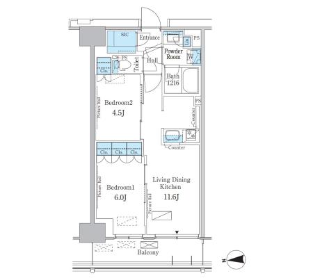 2階 213 | 267,000円 18,000円 | 1.0ヶ月 無 | 2LDK+WIC 45.03㎡ | 三井の賃貸 ペット可 フリーレント | お問合せ |
