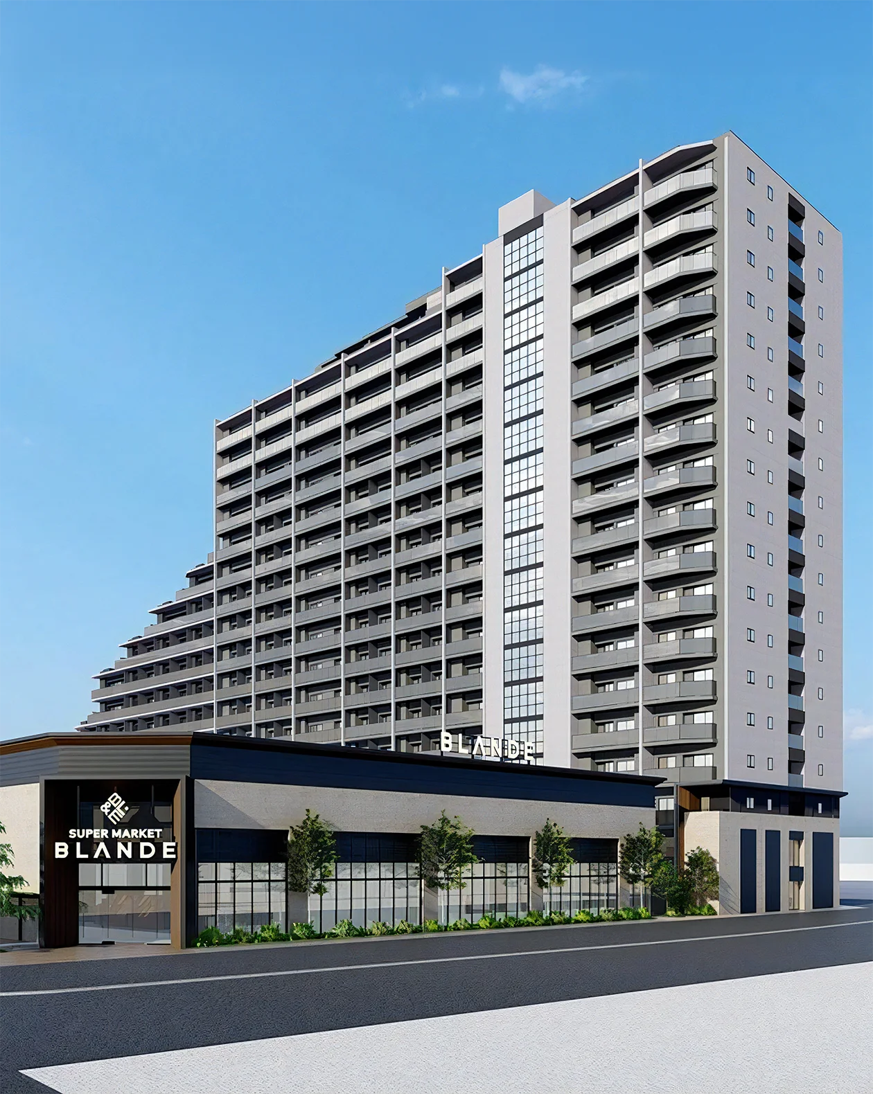 - ※掲載の完成予想CGは、計画段階の図面を基に描き起こしたものです。なお、形状の細部、設備機器等は表現しておりません。また、建物周囲の電柱等は省略しています。