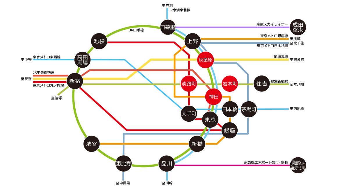 | JR東海道本線「東京」駅 | 1,200円 | 1,400円 | 約2.2km | 約10分 |