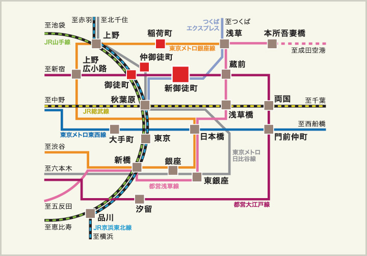 都営大江戸線・つくばエクスプレス線「新御徒町」駅徒歩3分。