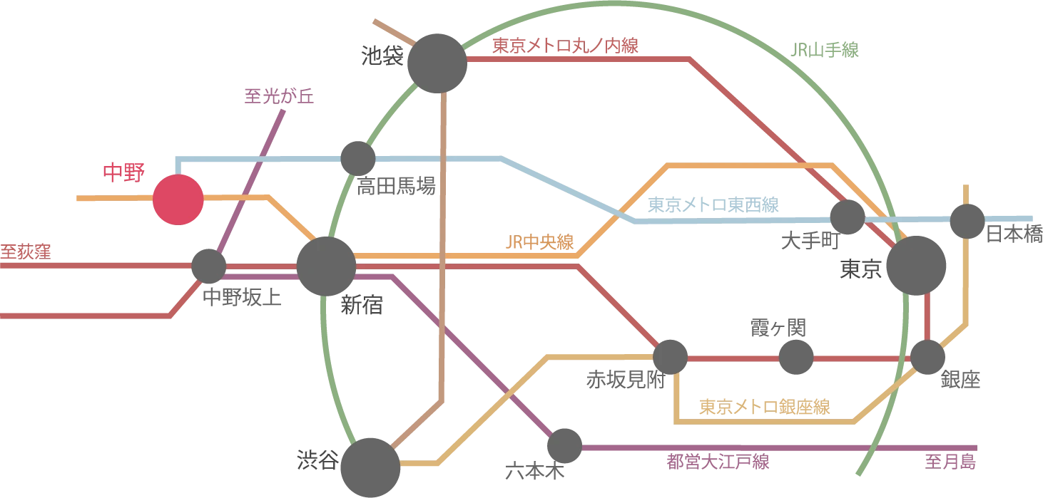 「中野」駅は3路線が乗り入れるターミナル駅。