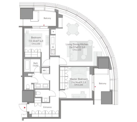 45階 4513 | 1,660,000円 0円 | 4.0ヶ月 無 | 2LDK 122.81㎡ | 新築 駅近 ペット可 分譲賃貸 タワー | お問合せ |