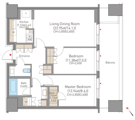 18階 1810 | 1,425,000円 0円 | 4.0ヶ月 無 | 2LDK 101.14㎡ | 新築 駅近 分譲賃貸 タワー | お問合せ |