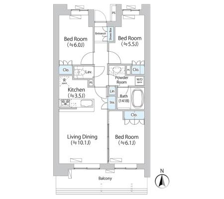 9階 903 | 219,000円 15,000円 | 1.0ヶ月 1.0ヶ月 | 2LDK+WIC+SIC 53.70㎡ | 三井の賃貸 駅近 | お問合せ |