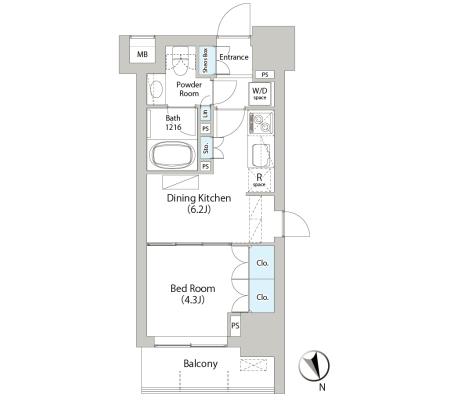 2階 213 | 267,000円 18,000円 | 1.0ヶ月 無 | 2LDK+WIC 45.03㎡ | 三井の賃貸 ペット可 フリーレント | お問合せ |