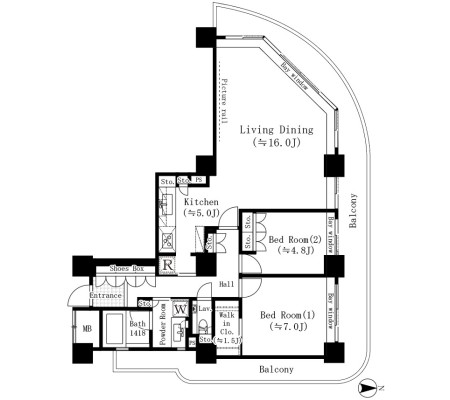 10階 1001 772,000円 20,000円 1.0ヶ月 1.0ヶ月 2LDK 95.08㎡ 駅近 ペット可 お問合せ