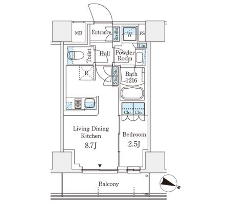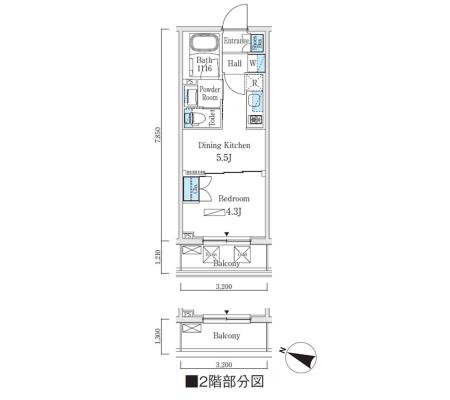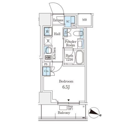 2階 203 166,000円 15,000円 1.0ヶ月 1LDK+WIC 25.02㎡ 三井の賃貸 駅近 お問合せ
