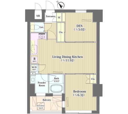 23階 2301 267,000円 12,000円 1.0ヶ月 1.5ヶ月 1LDK+DEN+SIC 60.80㎡ 三井の賃貸 駅近 タワー お問合せ