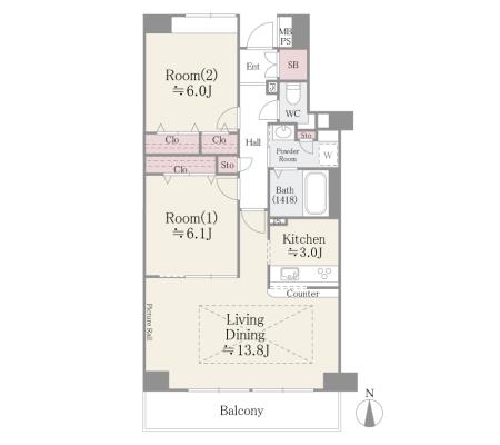 2階 213 | 328,000円 0円 | 1.0ヶ月 2.0ヶ月 | 2LDK+WIC 66.55㎡ | 駅近 分譲賃貸 タワー | お問合せ |