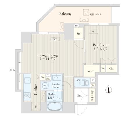 1LD・K+WIC / 44.47㎡