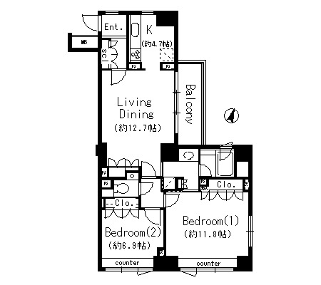 18階 1804 409,000円 0円 2.0ヶ月 2LDK 57.93㎡ 駅近 タワー お問合せ
