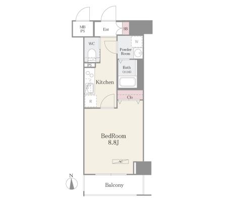 8階 805 133,000円 15,000円 1.0ヶ月 Studio+WIC 24.58㎡ 三井の賃貸 お問合せ