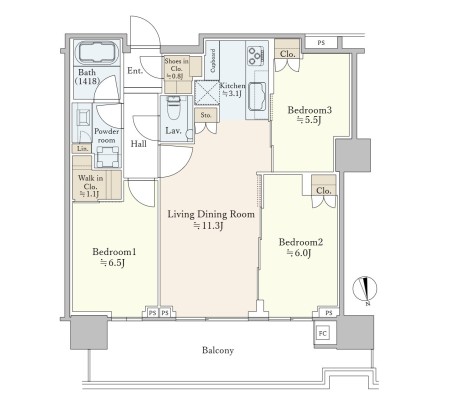 2LDK+WIC+SIC+N+TR / 70.74㎡