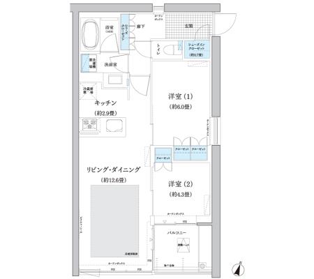 2階 204 209,000円 15,000円 1.0ヶ月 1.0ヶ月 2LDK+WTC+SIC 51.65㎡ 三井の賃貸 駅近 お問合せ