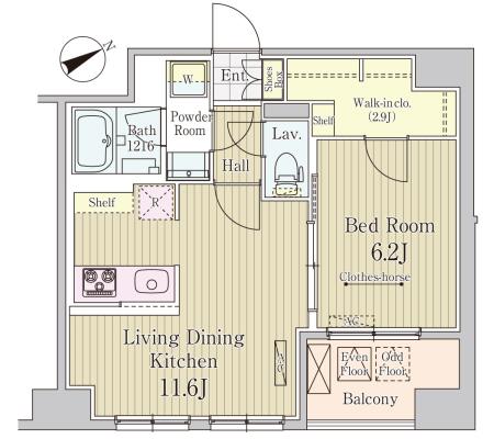 11階 1102 310,000円 20,000円 1.0ヶ月 2LDK+WIC 48.19㎡ 三井の賃貸 フリーレント お問合せ