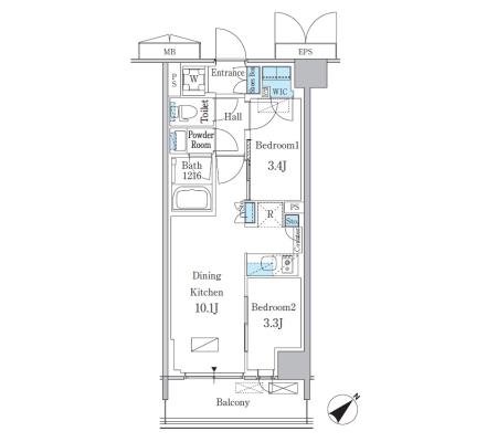 215 185,000円 9,000円 1.0ヶ月 1.0ヶ月 2LDK+WIC 55.25㎡ 三井の賃貸 駅近 お問合せ