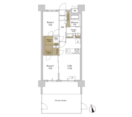 2LDK+2WIC / 55.43㎡
