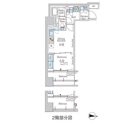 2階 207 | 165,000円 10,000円 | 1.0ヶ月 無 | 1DK+WIC 25.03㎡ | 三井の賃貸 駅近 | お問合せ |