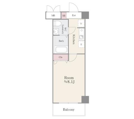 8階 805 100,000円 7,000円 1.0ヶ月 2.0ヶ月 1K 24.61㎡ 三井の賃貸 お問合せ