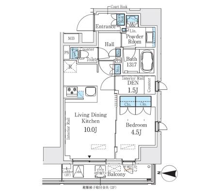 4階 408 | 173,000円 10,000円 | 1.0ヶ月 無 | 1DK+WIC 25.14㎡ | 三井の賃貸 駅近 フリーレント | お問合せ |