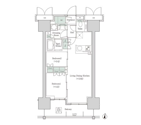 2階 202 | 248,000円 10,000円 | 無 無 | 1LDK 49.40㎡ | 新築 三井の賃貸 | お問合せ |