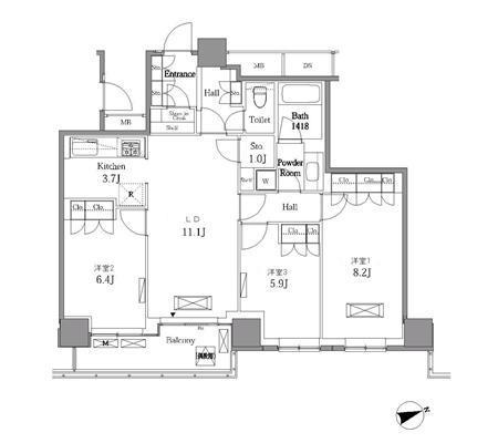 23階 2313 | 620,000円 30,000円 | 1.0ヶ月 無 | 3LDK+N+3WIC+SIC 88.54㎡ | 三井の賃貸 ペット可 タワー | お問合せ |