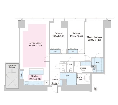 2LDK+Sun+DEN+WIC+SIC / 95.25㎡