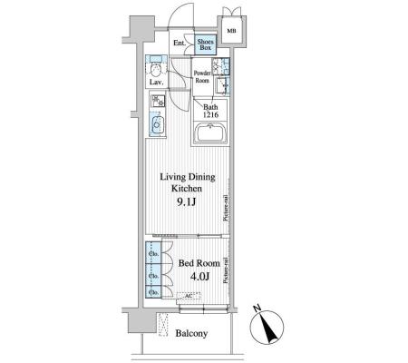 4階 409 125,000円 10,000円 1.0ヶ月 1D・K 25.34㎡ 三井の賃貸 駅近 お問合せ