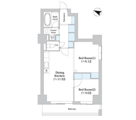 11階 1101 | 246,000円 18,000円 | 1.0ヶ月 無 | 2LDK+WIC+SIC 45.95㎡ | 三井の賃貸 駅近 フリーレント | お問合せ |