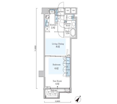 4階 408 | 195,000円 18,000円 | 1.0ヶ月 1.0ヶ月 | 1LDK+WIC 38.04㎡ | 三井の賃貸 駅近 ペット可 | お問合せ |