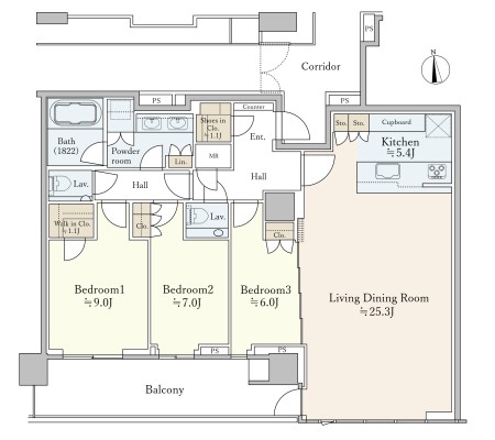 2LDK+Sun+DEN+WIC+SIC / 95.25㎡