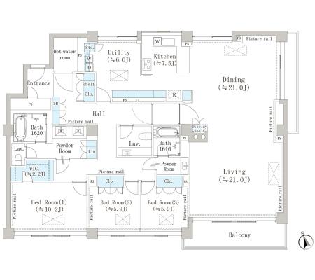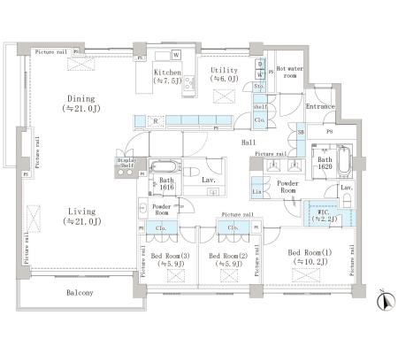 2LDK+Sun+DEN+WIC+SIC / 95.25㎡