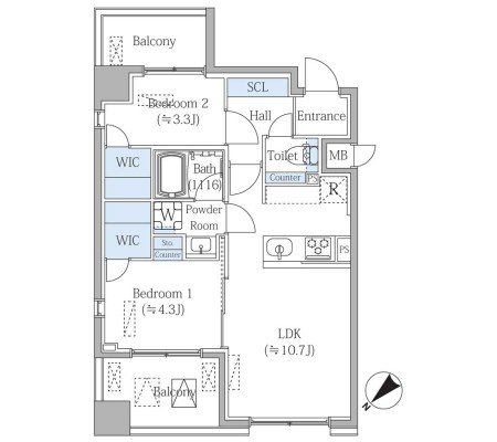 2LDK+WIC / 43.97㎡