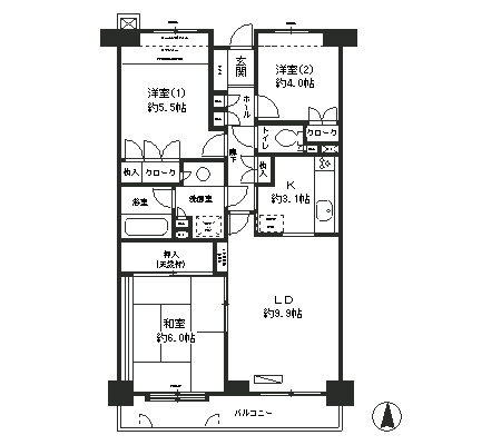 新着 賃料改定 礼金改定 2階 WC 206 176,000円 10,000円 1.0ヶ月 1.5ヶ月 3LDK+N 69.25㎡ 三井の賃貸 分譲賃貸 お問合せ
