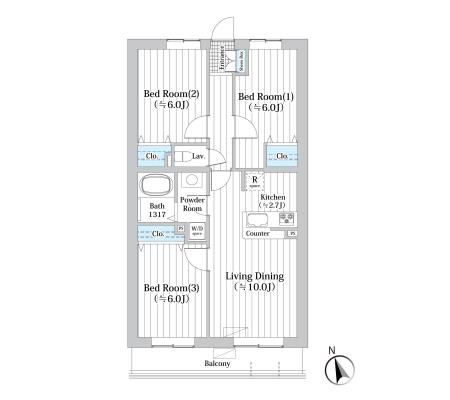 礼金改定 1階 109 172,000円 10,000円 1.0ヶ月 3LDK 65.43㎡ 三井の賃貸 お問合せ