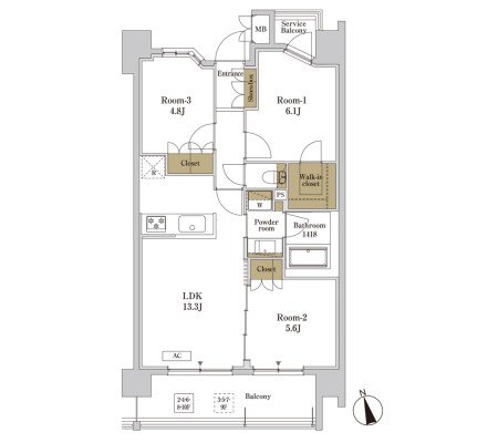 3LDK+WIC+SIC / 65.00㎡