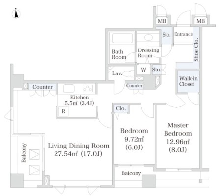 2LDK+2WIC / 55.43㎡