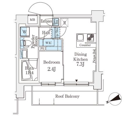 7階 704 | 128,000円 15,000円 | 1.0ヶ月 無 | 1DK+WIC+RB 25.37㎡ | 三井の賃貸 ペット可 | お問合せ |
