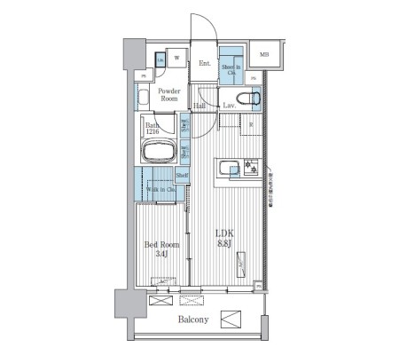 賃料改定 申込有 8階 806 136,000円 8,000円 1.0ヶ月 1.0ヶ月 1K+WIC+N 32.23㎡ 三井の賃貸 専任物件 駅近 お問合せ