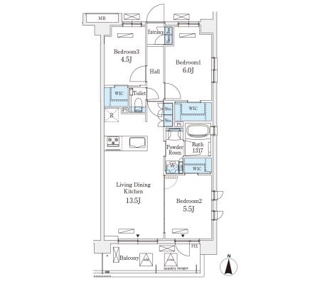 礼金改定 13階 1303 245,000円 20,000円 1.0ヶ月 3LDK+WIC 56.40㎡ 三井の賃貸 駅近 ペット可 お問合せ