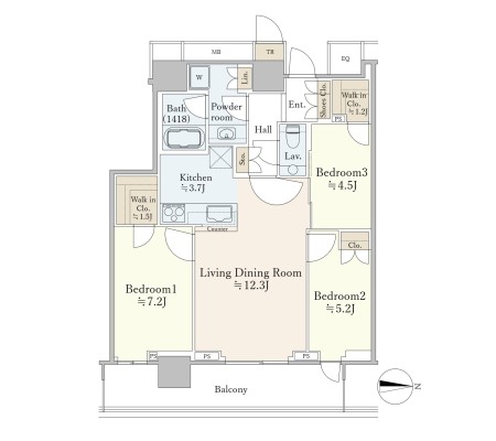 2LDK+S+WIC+SIC+TR / 72.02㎡