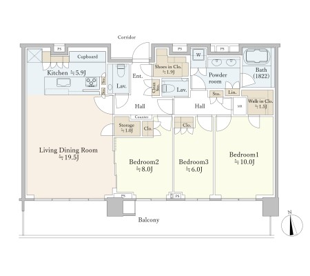 1階 101 354,000円 20,000円 1.0ヶ月 3LD・K+N+Wic+Sic 65.20㎡ 三井の賃貸 駅近 ペット可 フリーレント お問合せ