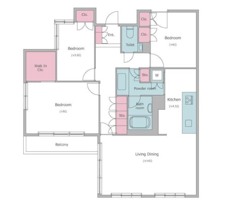 10階 1001 | 430,000円 20,000円 | 1.0ヶ月 無 | 2LDK+WIC+SIC 58.26㎡ | 三井の賃貸 ペット可 | お問合せ |