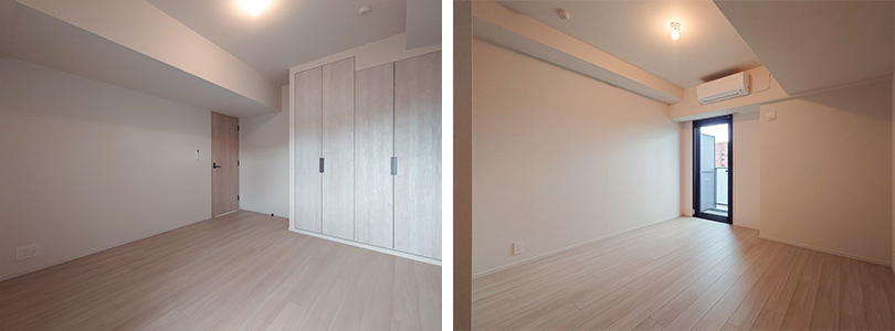 ベッドルーム1にもピクチャーレールが設けられています。また、2枚扉のクローゼットが2つ設置され、収納力があります。