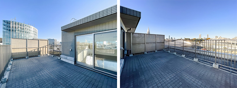ルーフバルコニーからは東京体育館や国立競技場を眺められます。