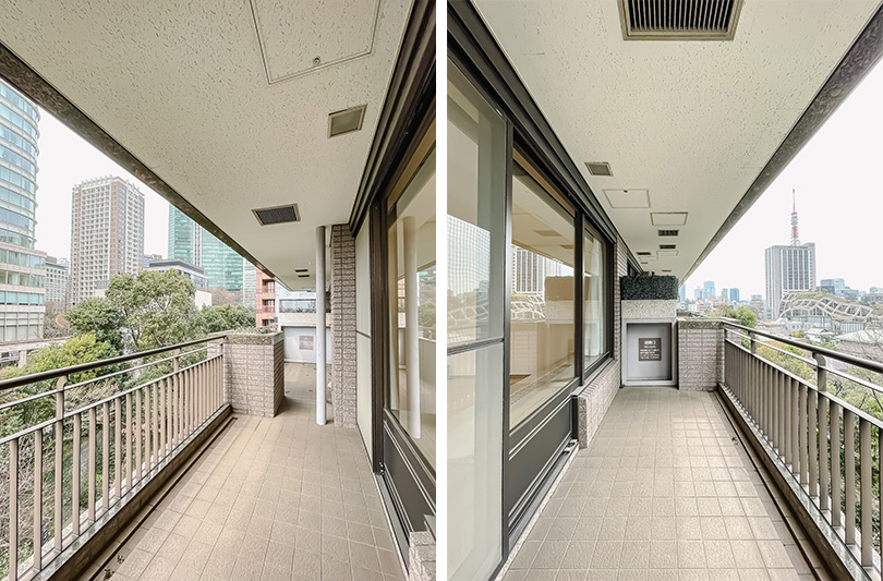 バルコニーへはリビングダイニングとベッドルームから出入りができます。