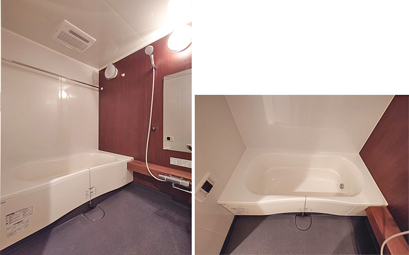 ■シックなカラーで機能的な水回り設備