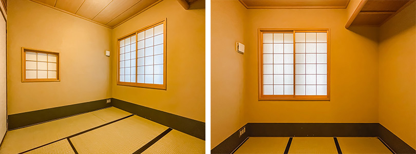 廊下の右側には和室が設けられています。来客の応接や宿泊に用いるほか、寝室やリラックススペースなどとしても活用できます。
