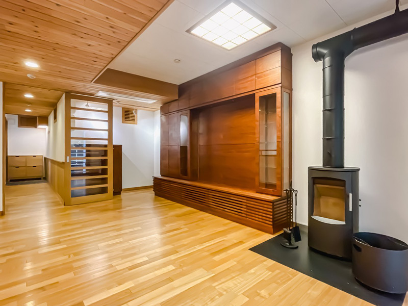 さらにスタイリッシュなデザインの薪ストーブが設置されているのも魅力。炎のゆらめきを眺めながら、リラックスして過ごす暮らしが叶います。