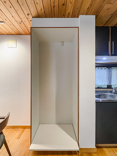 また、キッチンとダイニングの間には、大容量の収納が設けられています。